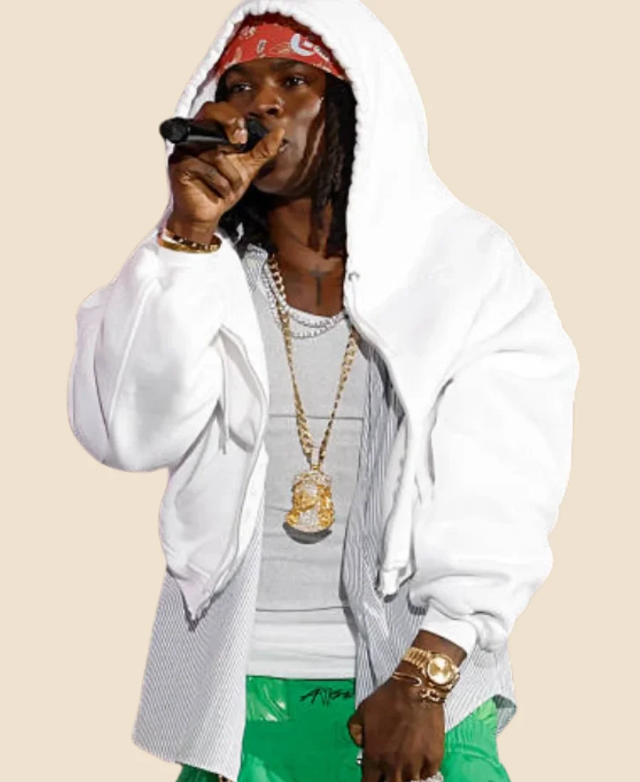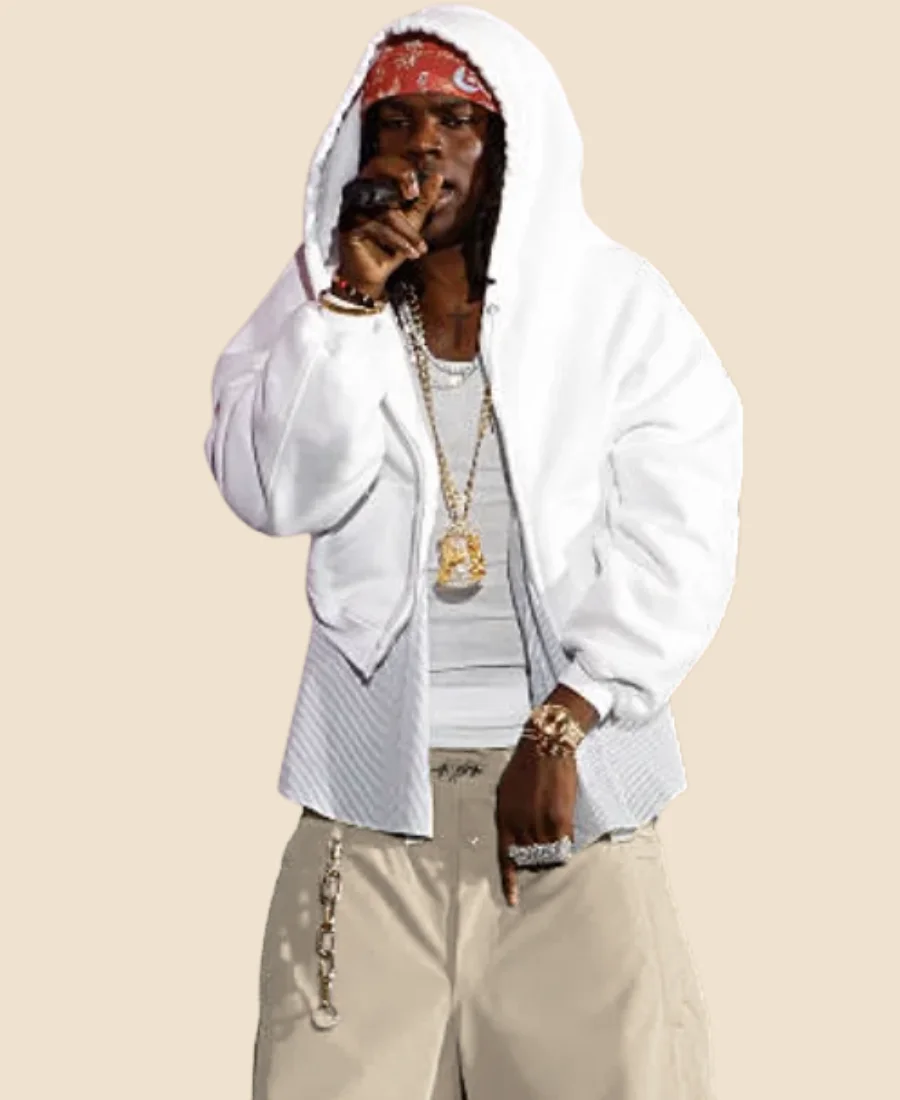 Rema 2025 Global Citizen Festival White Crop Zipper Hoodie
