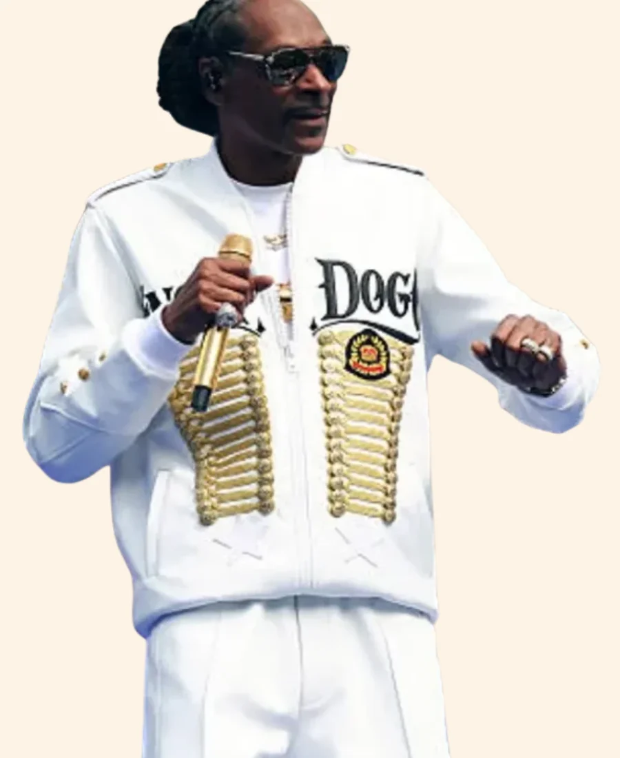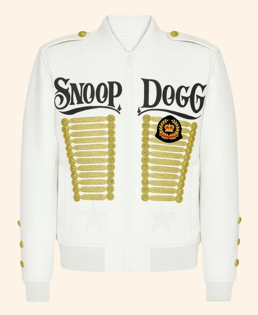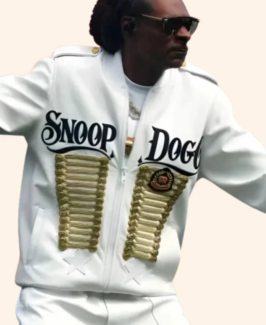 Snoop Dogg AFL Grand Final 2025 White Leather Bomber Jacket