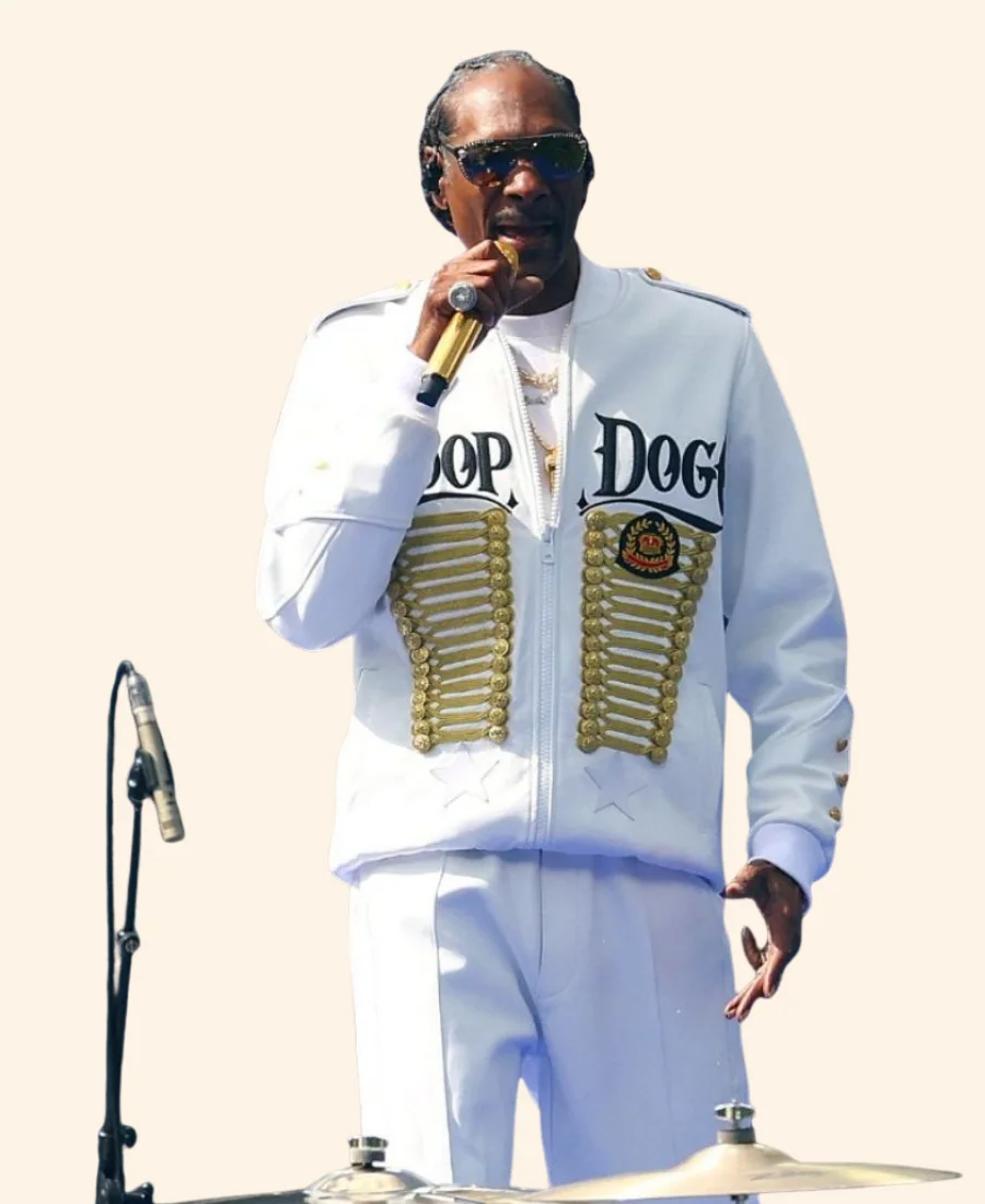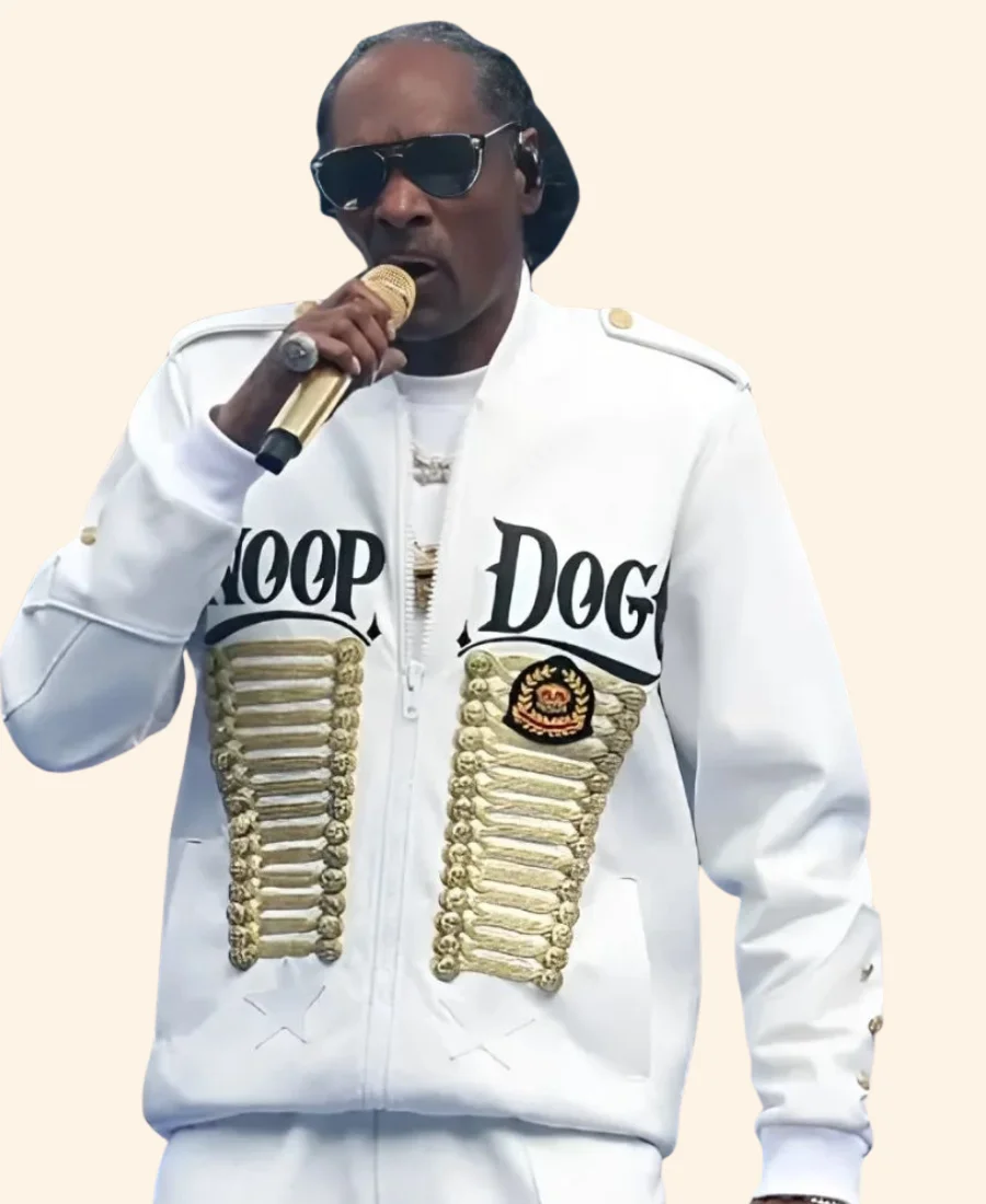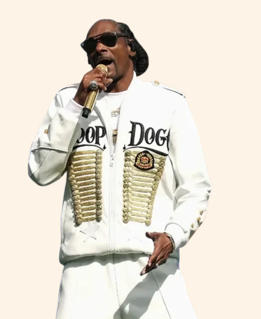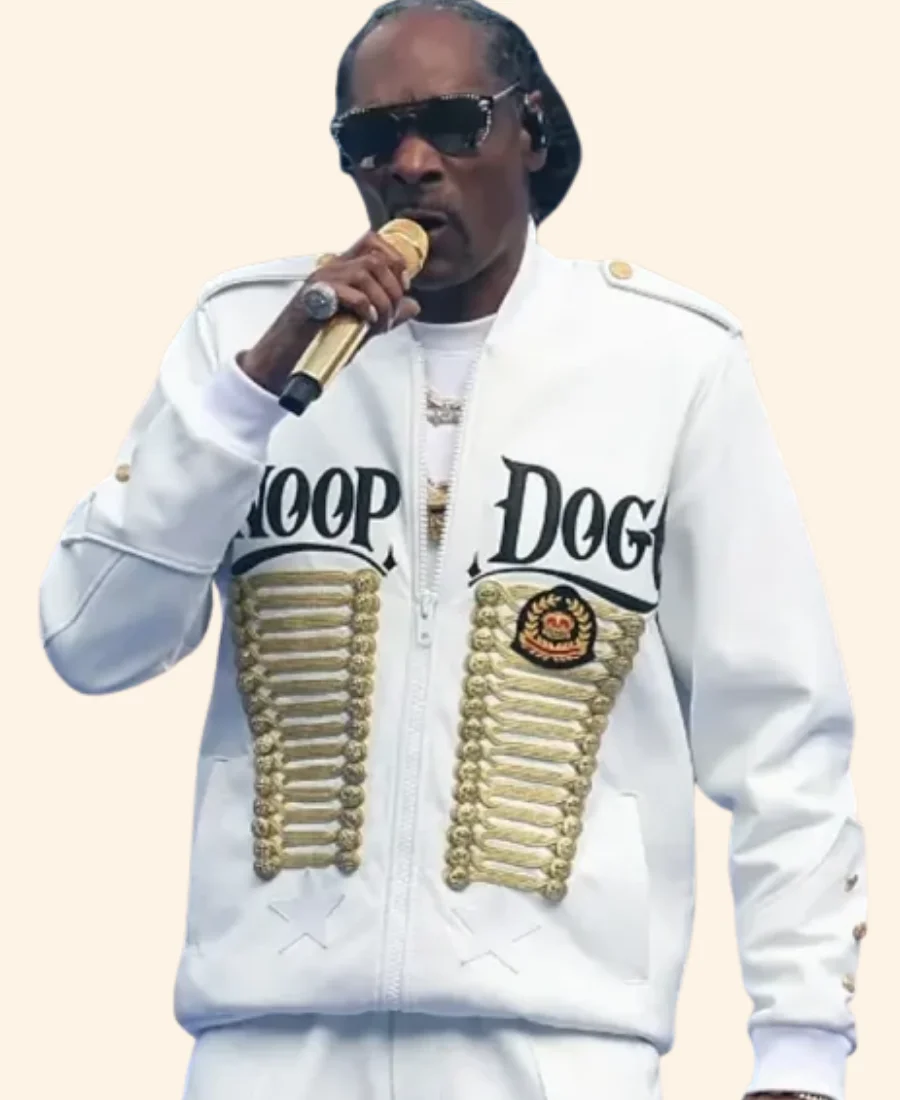 Snoop Dogg AFL Grand Final 2025 White Leather Bomber Jacket