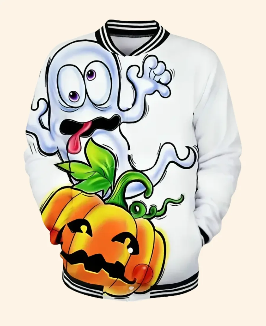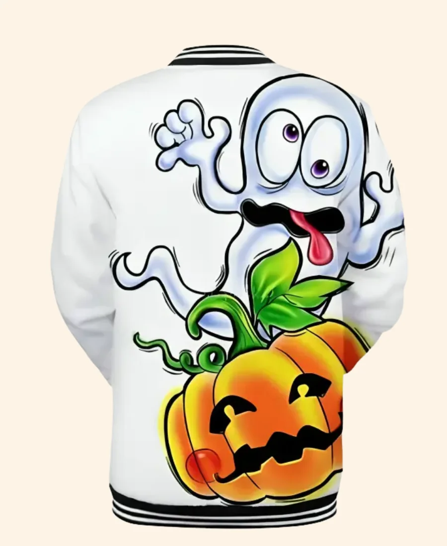 Halloween Funny Pumpkin Print White Varsity Jacket