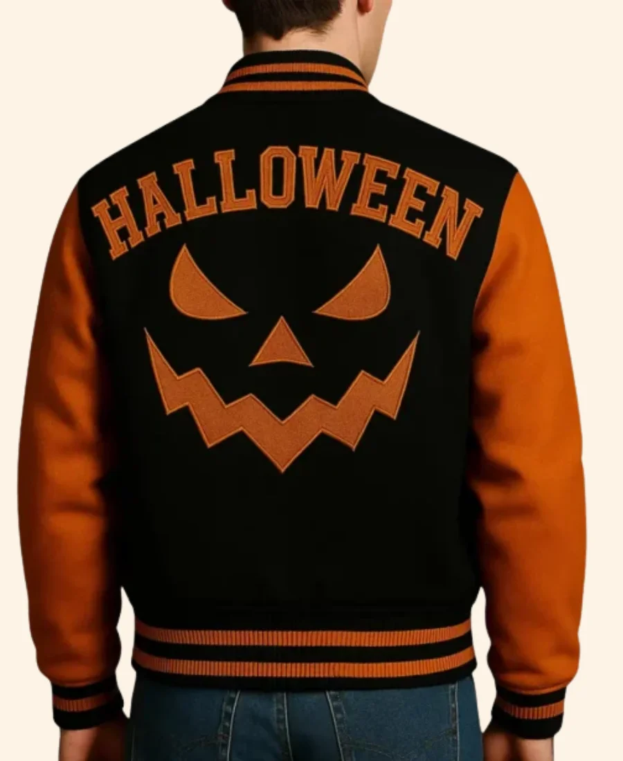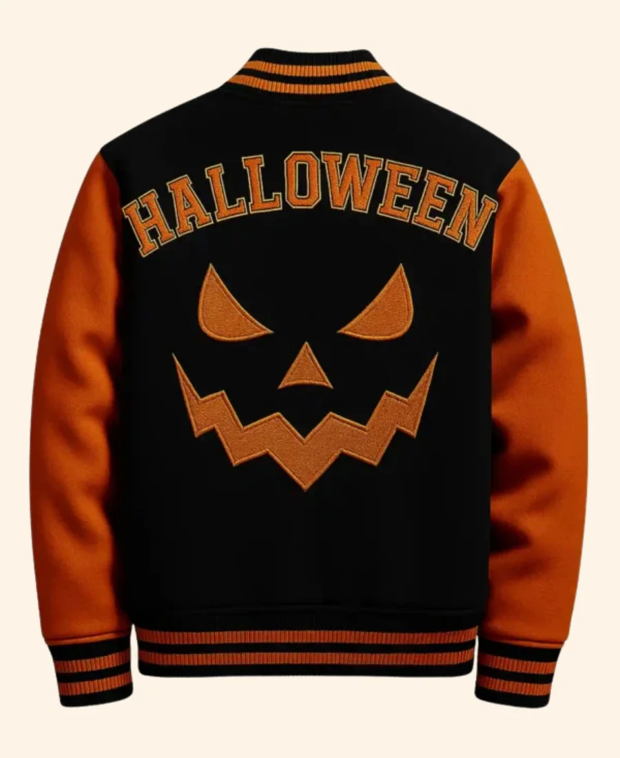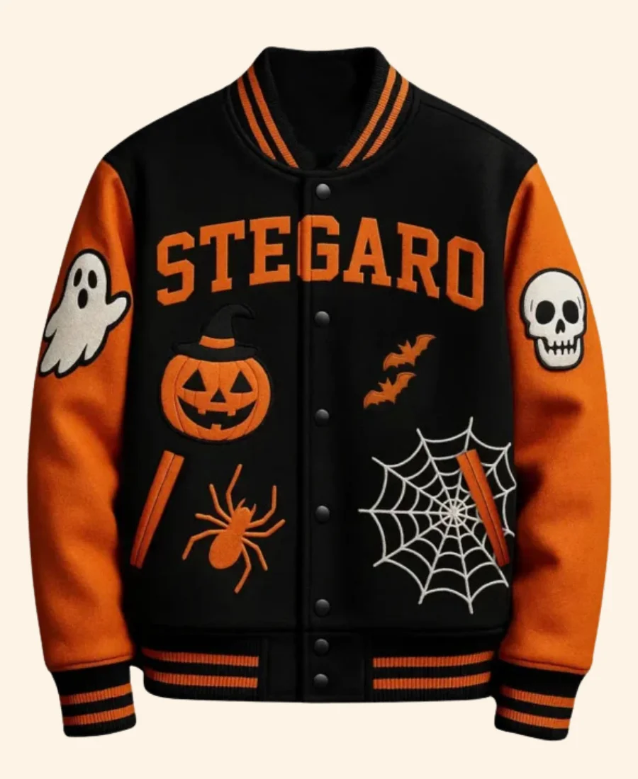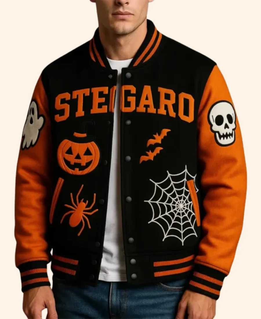 • Style: Halloween Pumpkin Stegaro Varsity Jacket