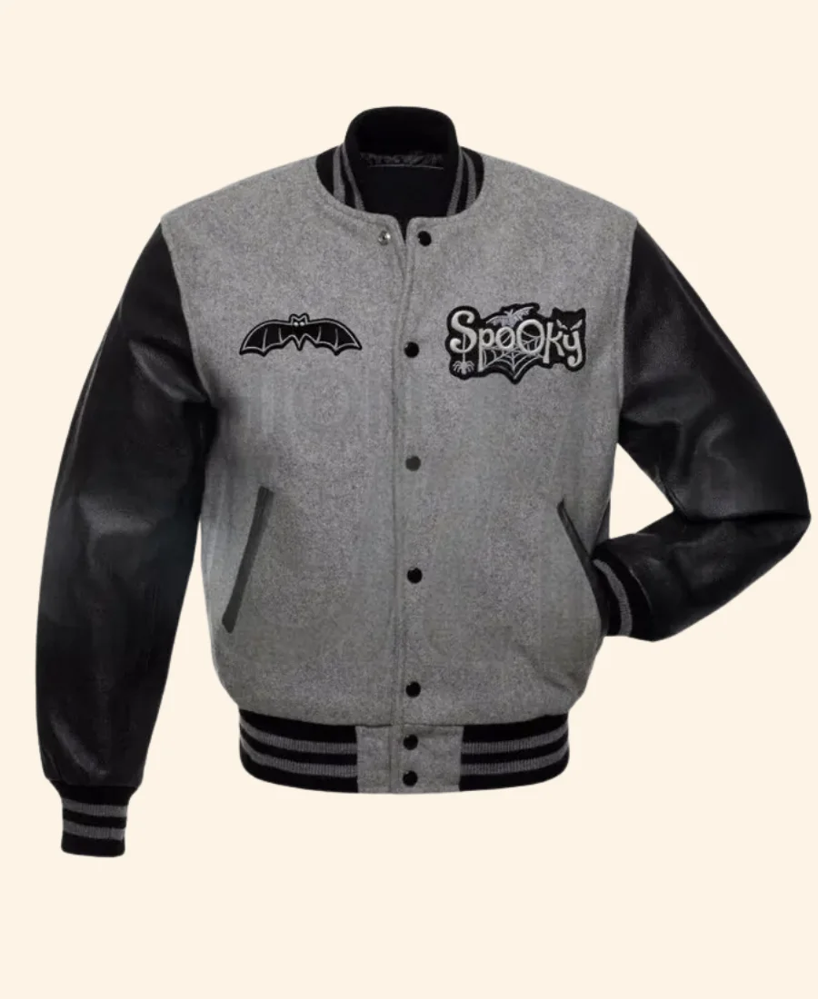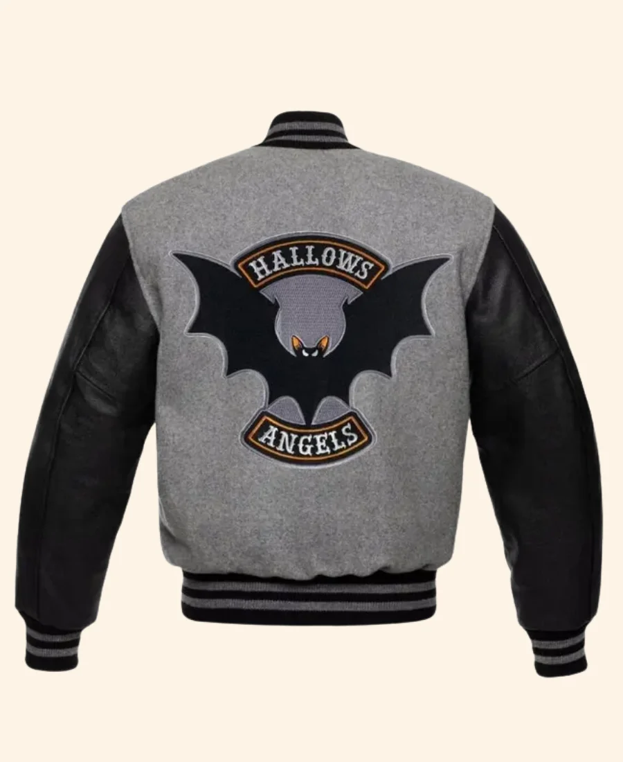 Halloween Spooky Hallows Angels Black & Grey Varsity Jacket
