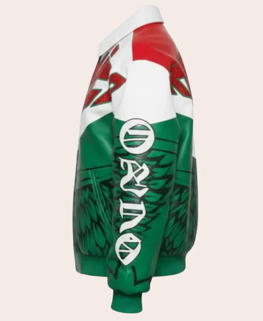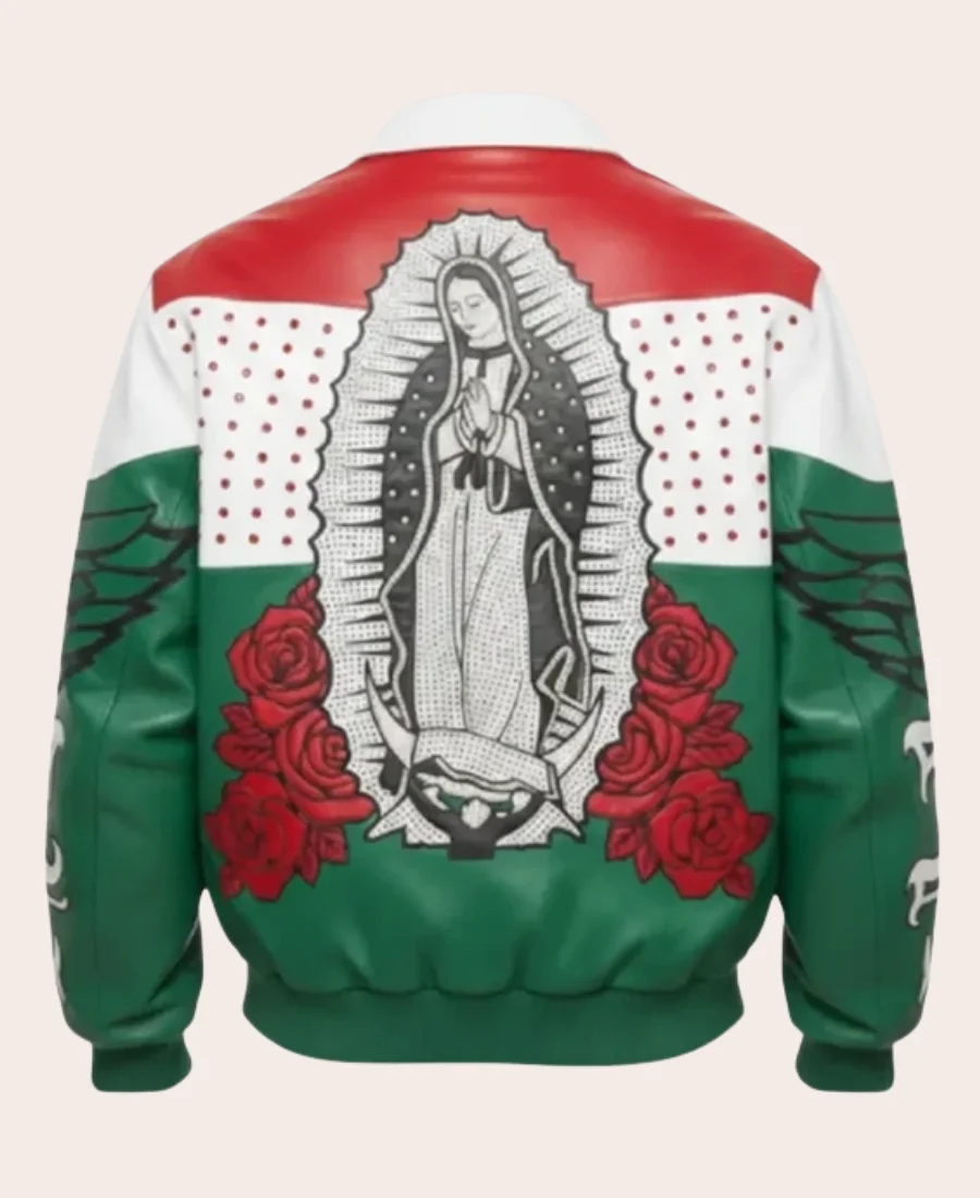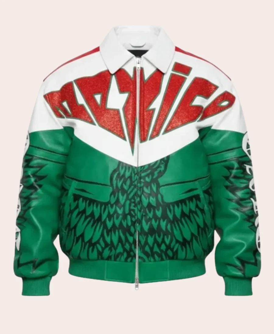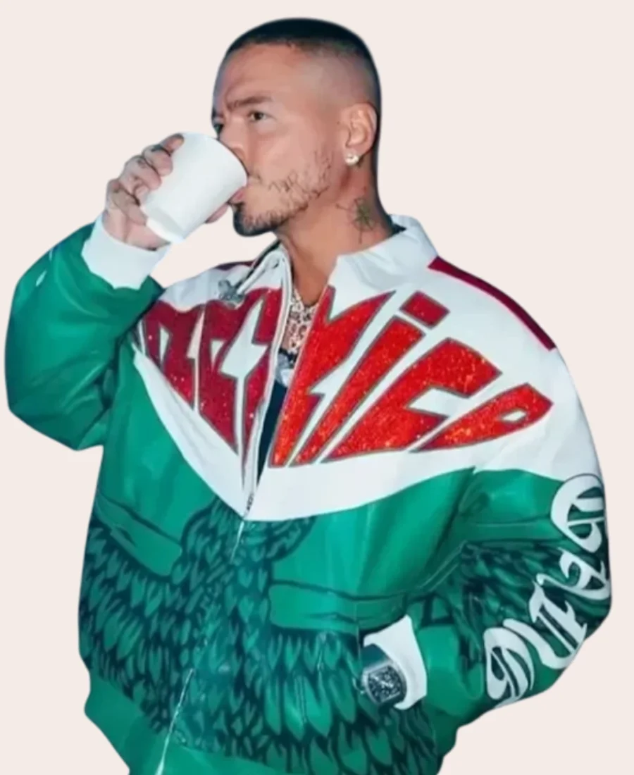 2025 J Balvin Mexico Guadalupe Green Leather Bomber Jacket