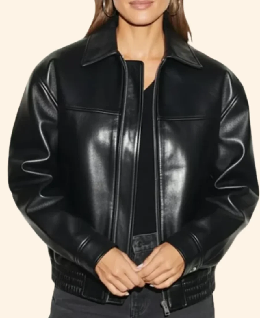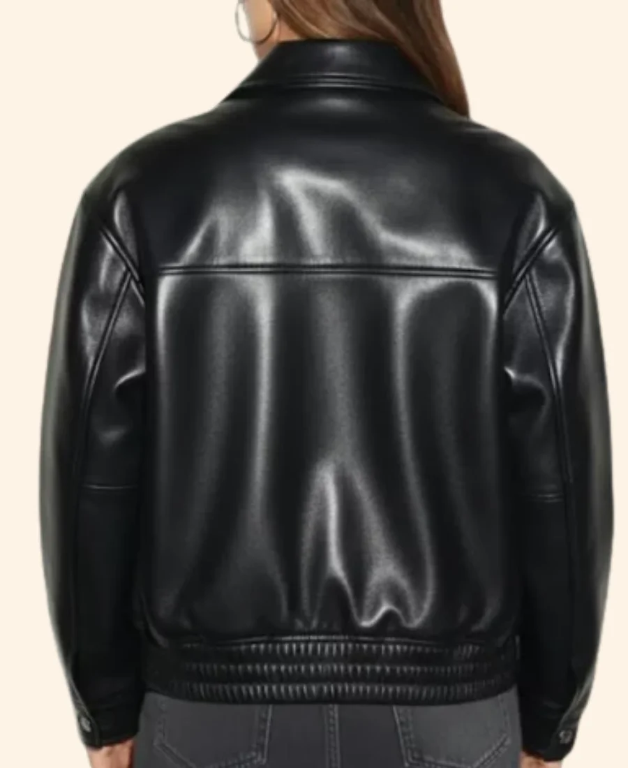 • Style: Jessica Alba Black Leather Bomber Jacket