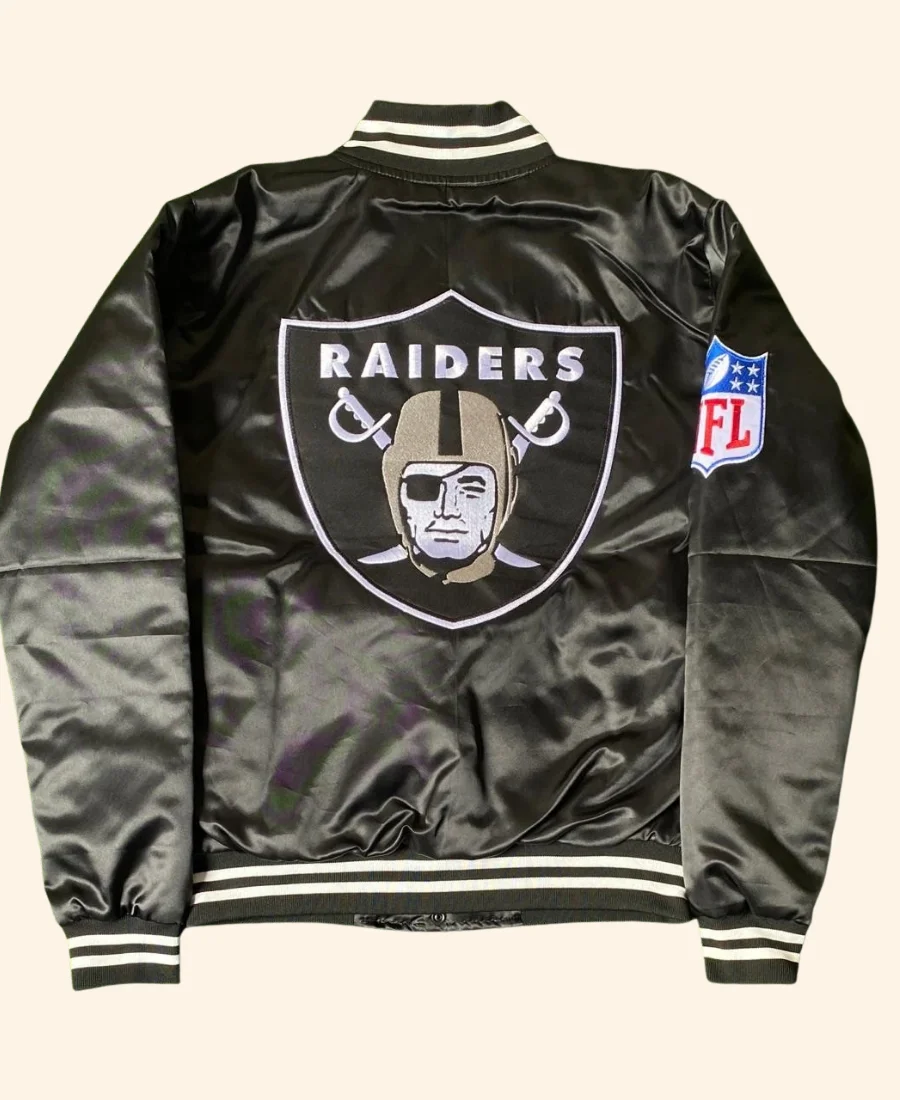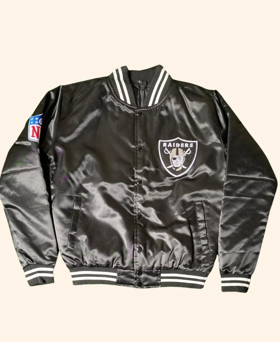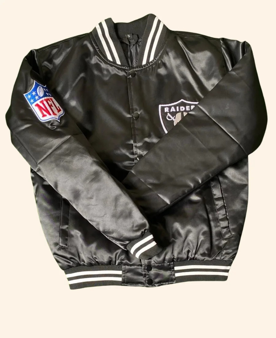 NFL 2025 Las Vegas Raiders Jacob Fatu Black Satin Varsity Jacke