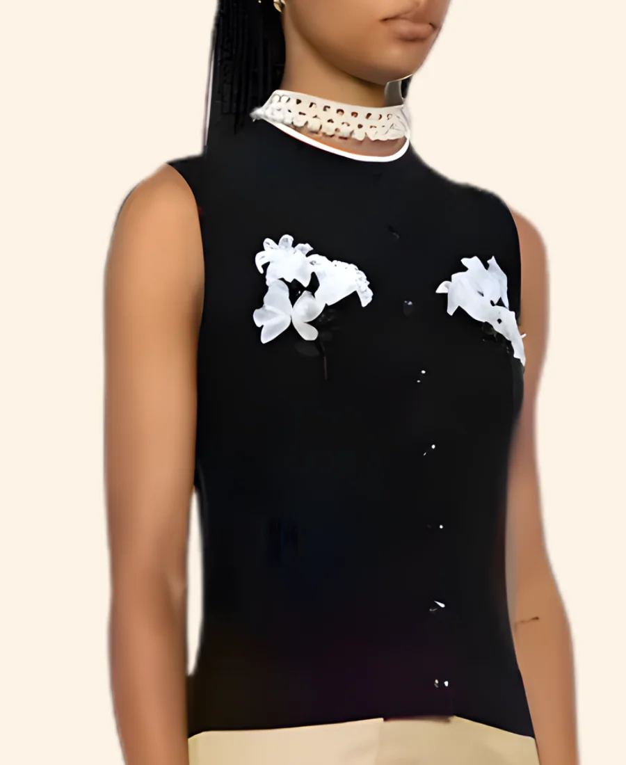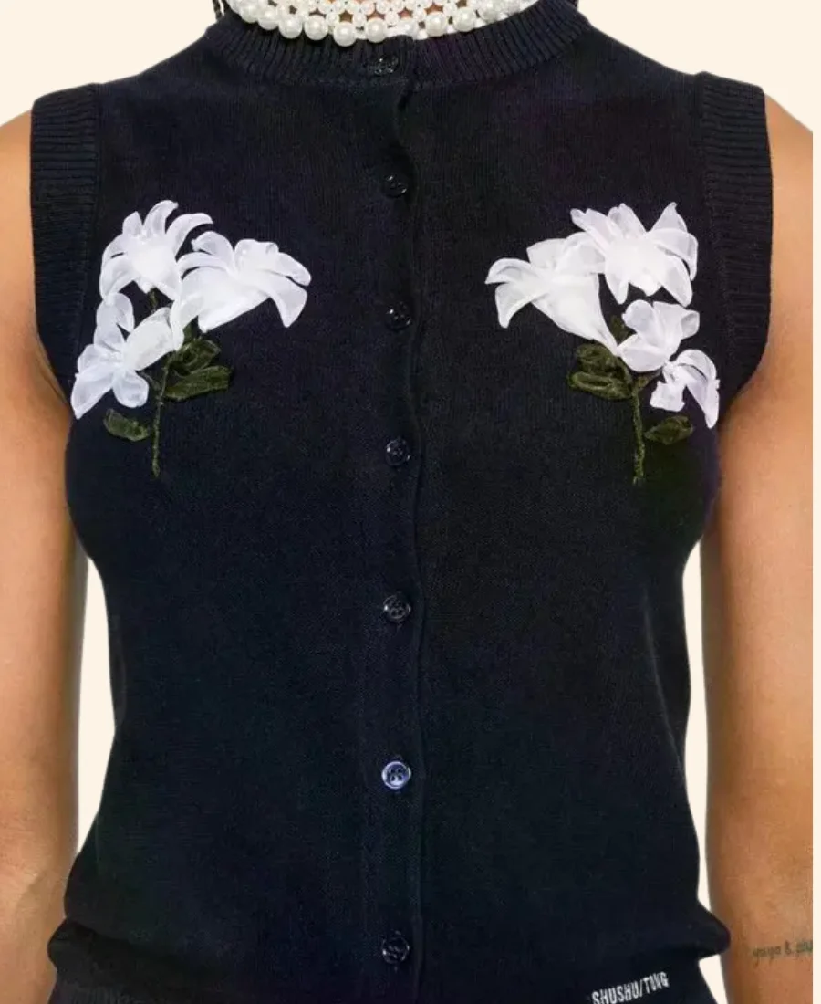 Kirsten Dunst Live With Kelly And Mark Navy Blue Floral Embroidered Vest