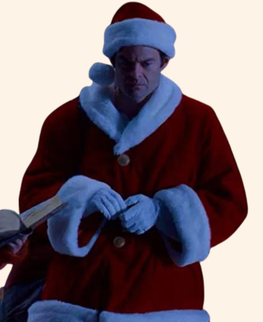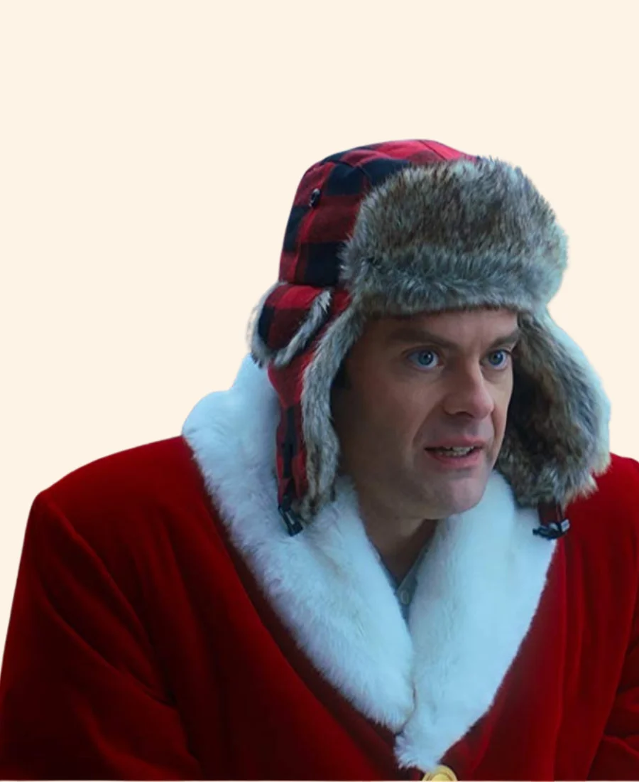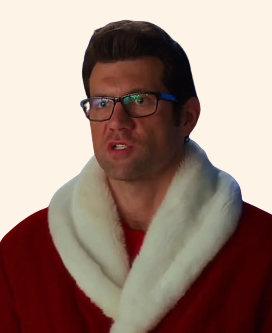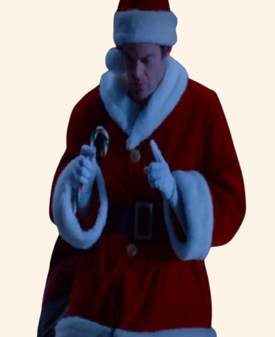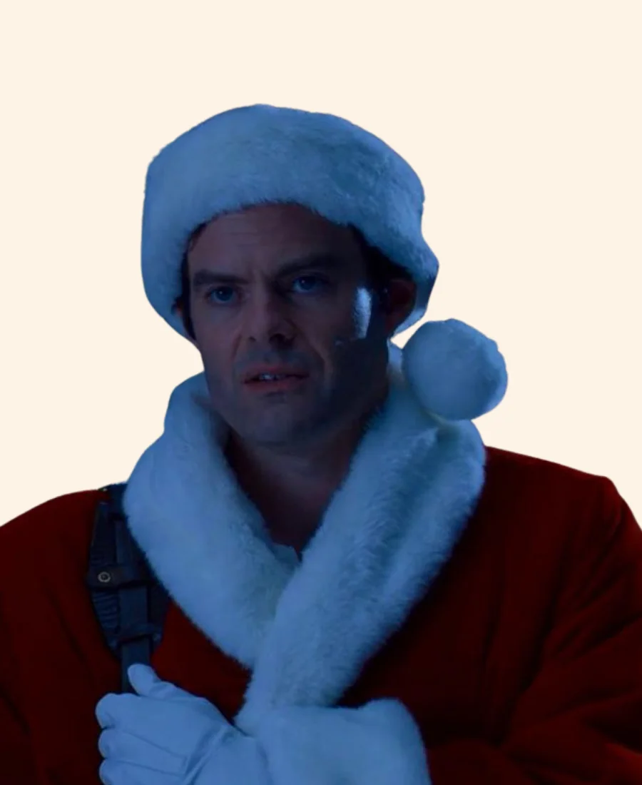Bill Hader Noelle Nick Kringle Red & White Santa Shearling Coat