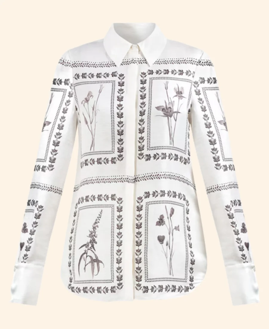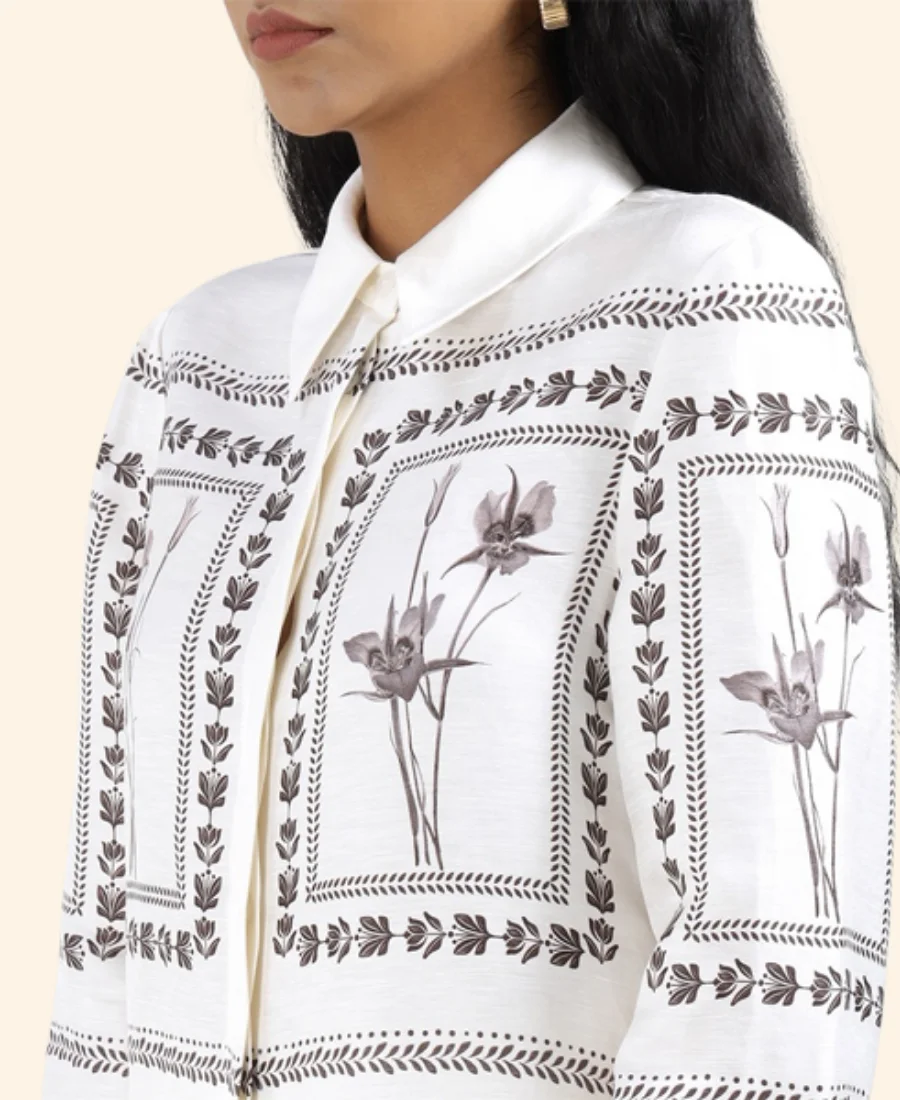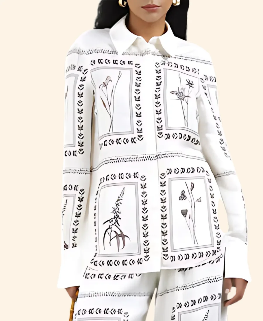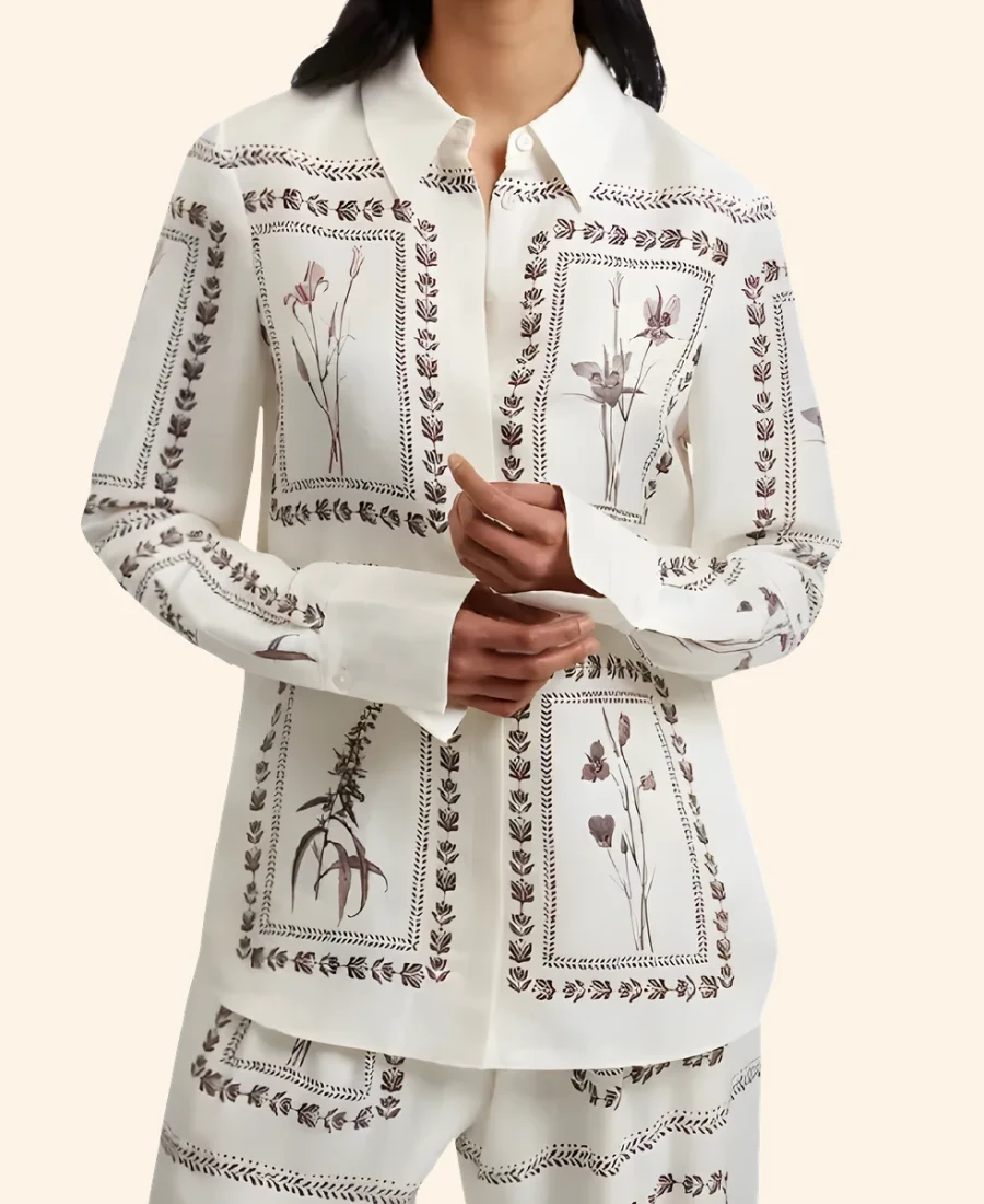 Meryl Streep Only Murders In The Building Season 05 Loretta Durkin White Printed Shirt