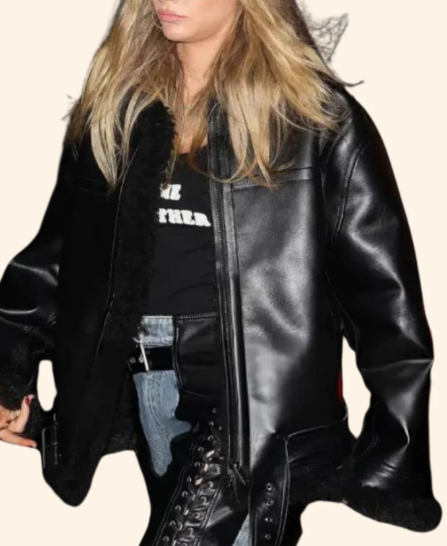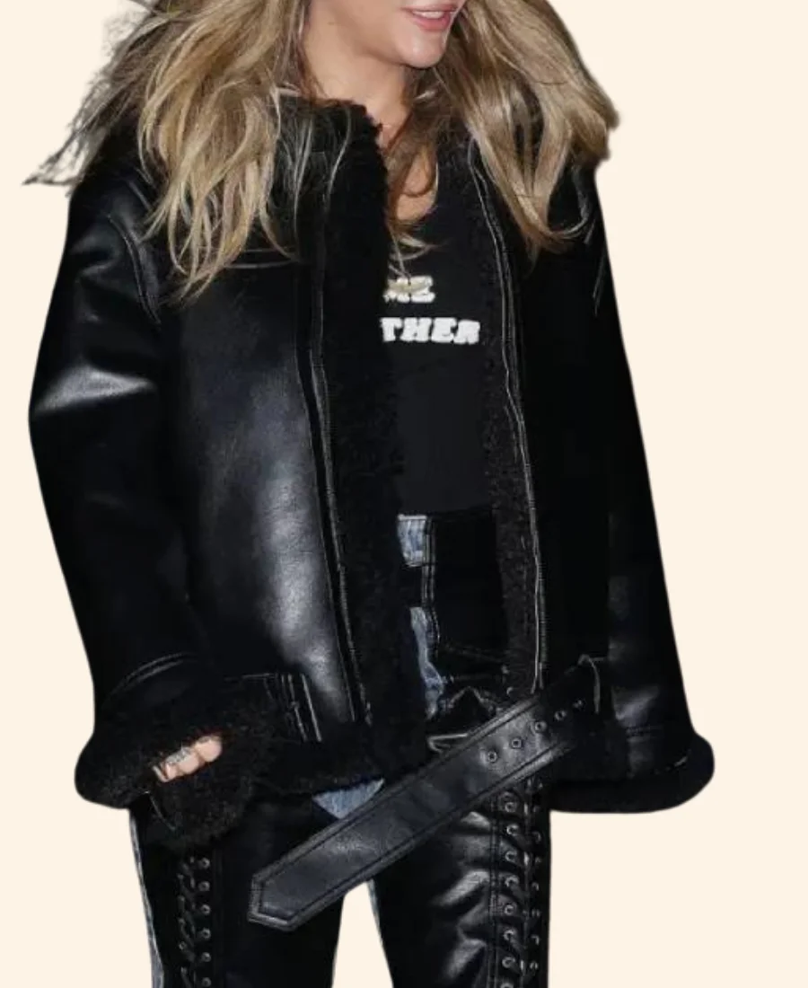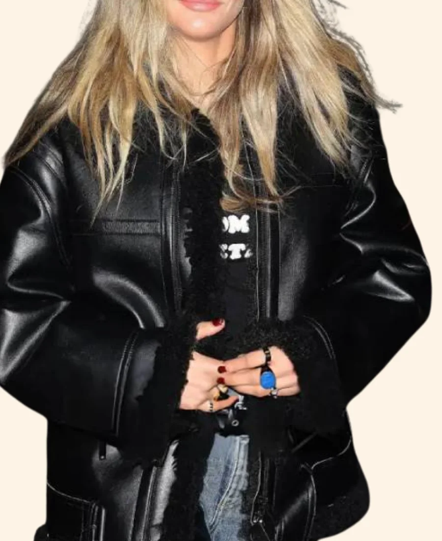 Cara Delevingne Paris Fashion Week 2025 Black Leather Jacket