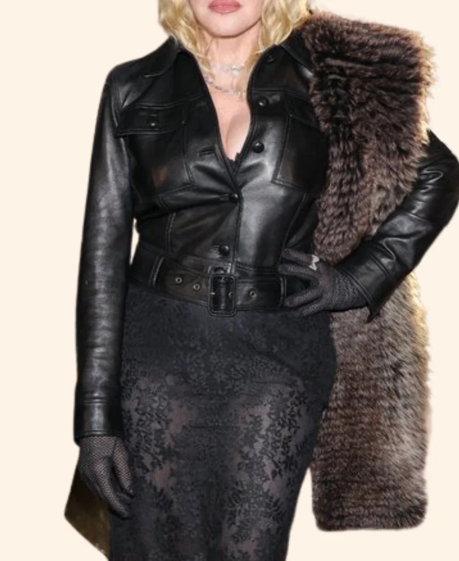 Madonna Paris Fashion Week Photocall 2025 Black Leather Jacket