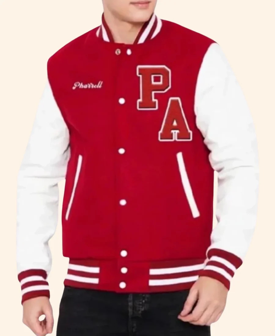 Pharrell Williams Letterman Red & White Varsity Jacket