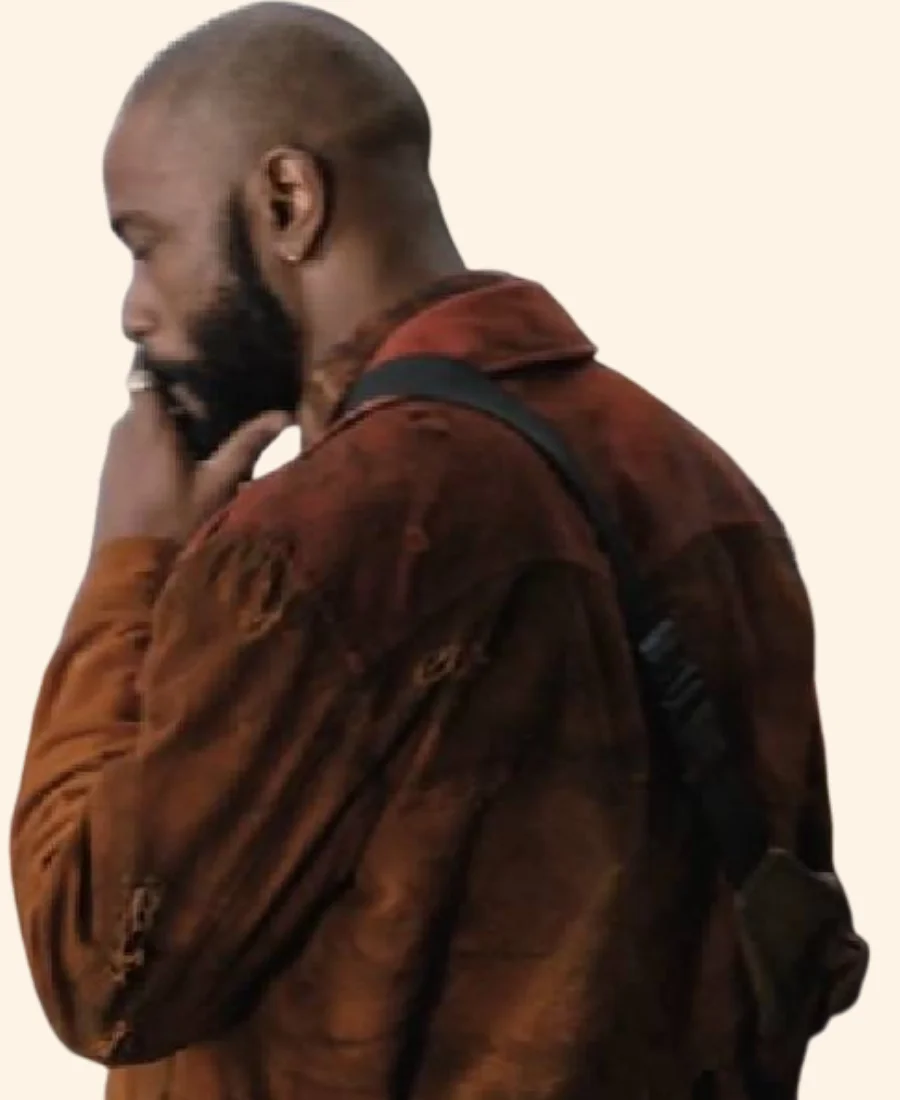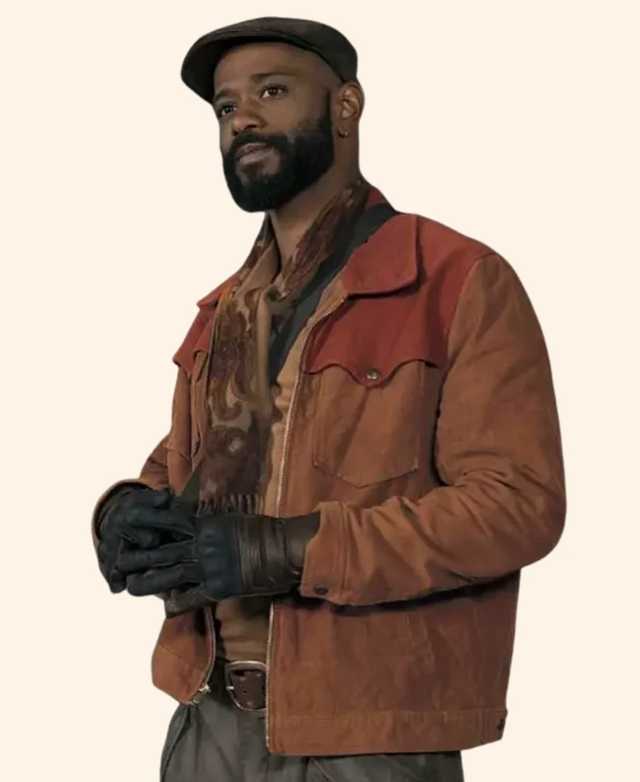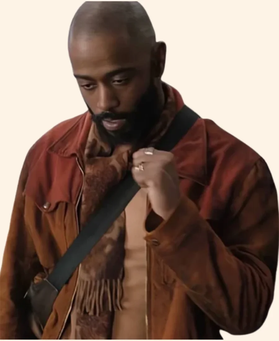 LaKeith Stanfield Play Dirty 2025 Alan Grofield Brown Suede Leather Jacket