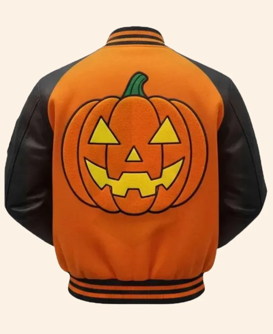Halloween Pumpkin Crew Orange & Black Letterman Varsity Jacket